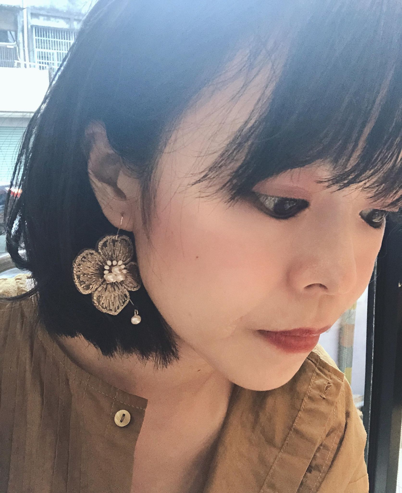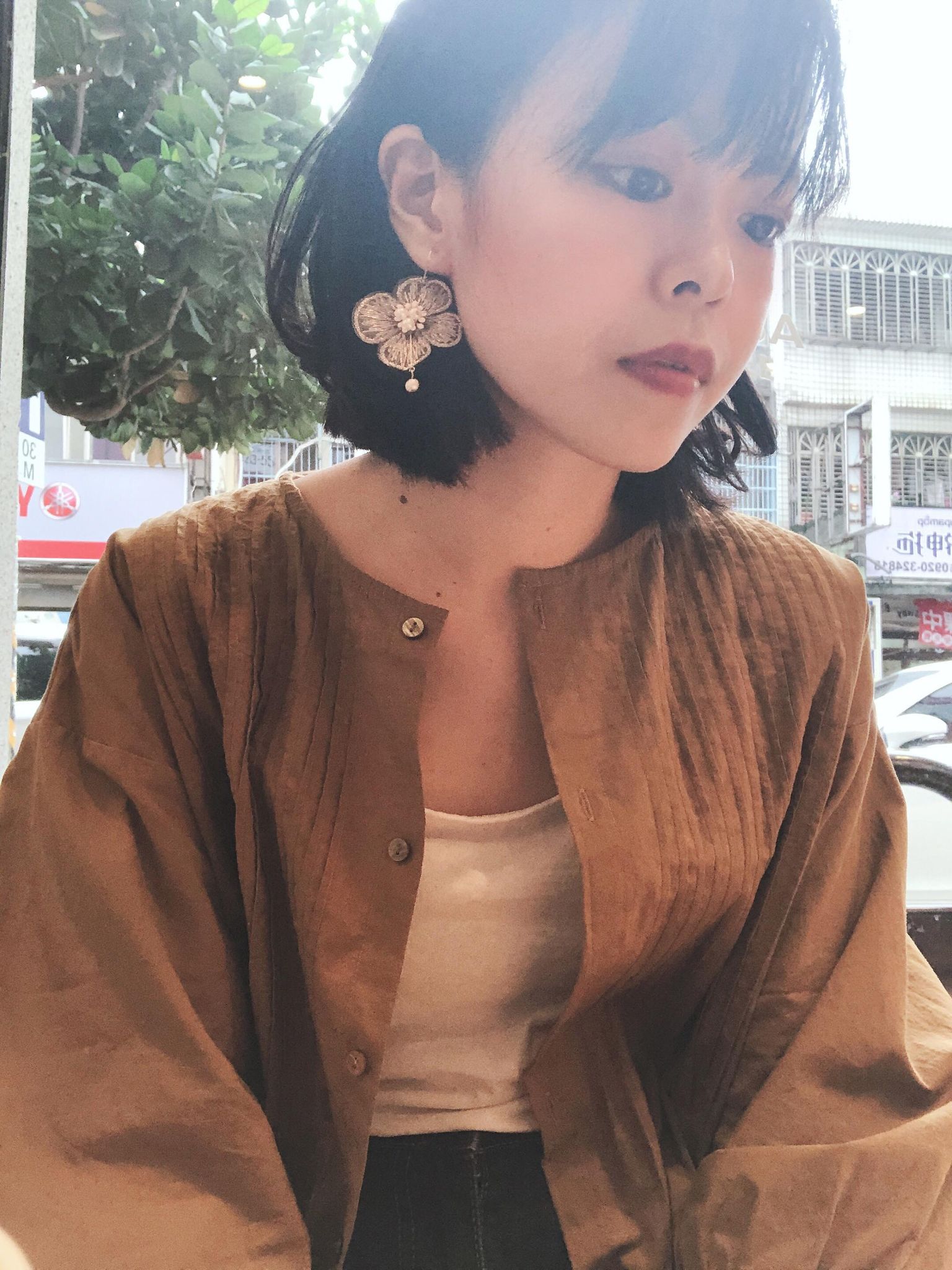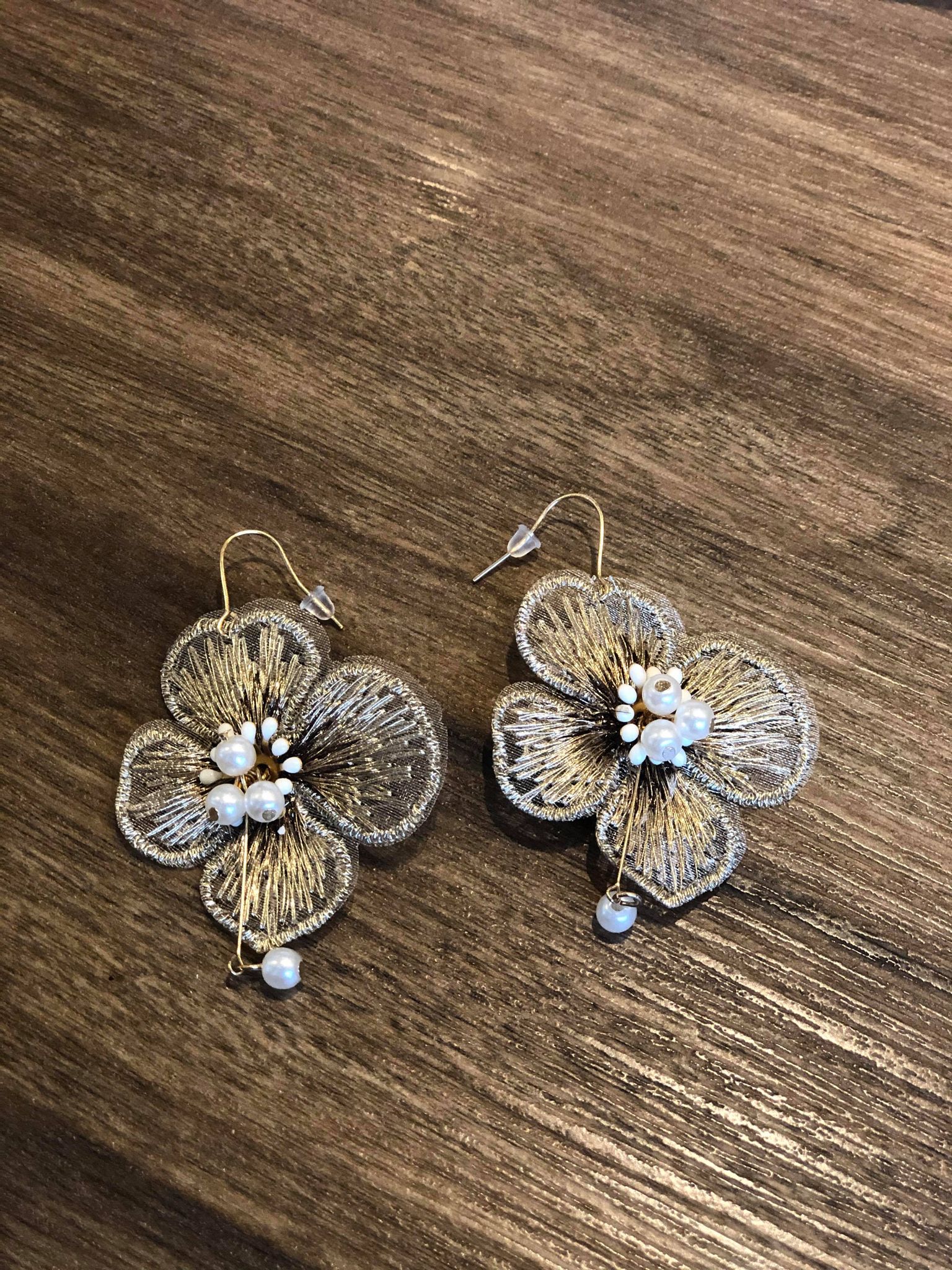 金絲銀杏小珍珠耳環